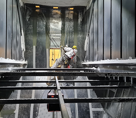 -İpli emniyet sisteminden destek alan her İple erişim teknisyenlerinin ipinde, otomatik-emniyetli iniş mekanizmaları bulunur.